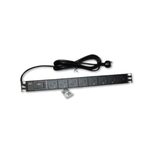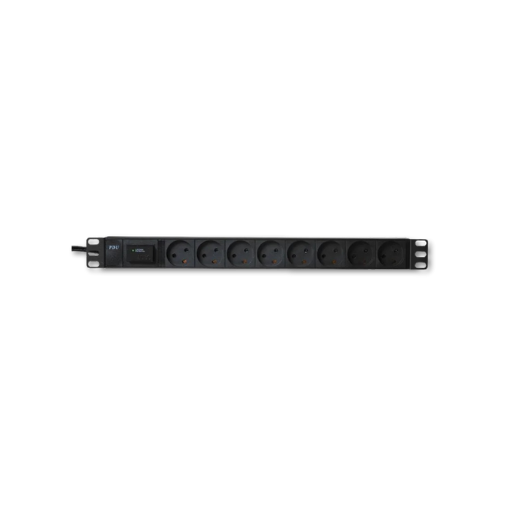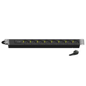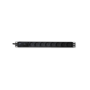STRØMPANEL 8x230V+J+CEE PLUG. 16A. SORT 19″ TRANSIENT BESK